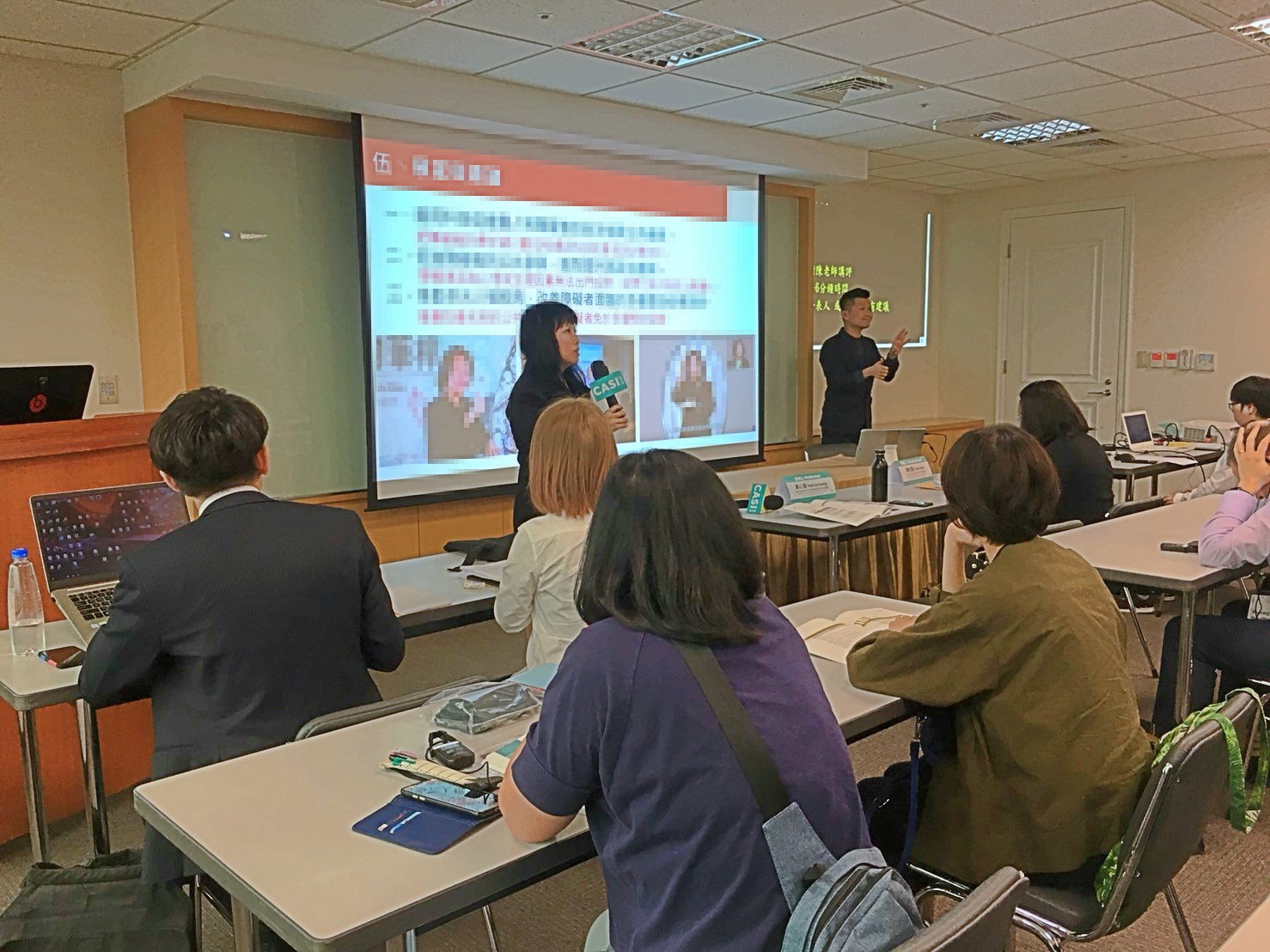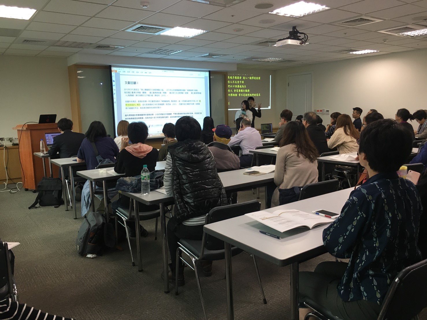 第二場論文發表以「聽障」為主題, 三位發表人分別以國立臺灣美術館、國立自然科學博物館及國家人權博物館為例進行分享。本場主持人為國立臺北教育大學藝術與造形設計學系副教授 黃心蓉女士、評論人為國立彰化師範大學特殊教育學系副教授 陳怡慧女士,發表人為國立臺南大學戲劇創作與應用學系副教授 陳晞如女士、國立臺北藝術大學博物館研究所碩士班研究生 陳又真女士及國家人權博物館助理研究員 鄧宗德先生。